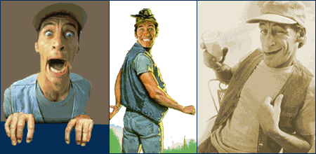 The three faces of Bobby. (The Wot!!) From Left to Right: "HAPPY DAAAAAAAAAYS!!" "I just found a quid!!" "Stop it, poppet!!" |